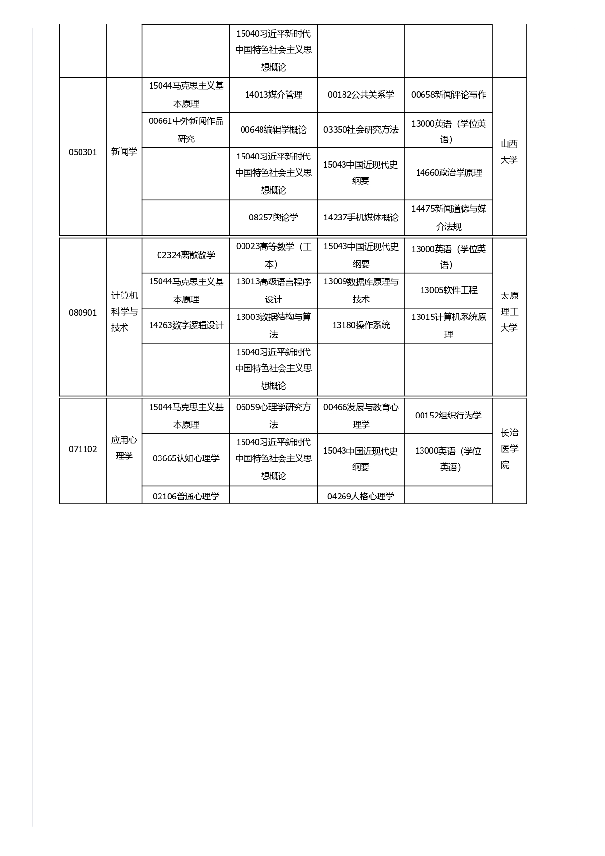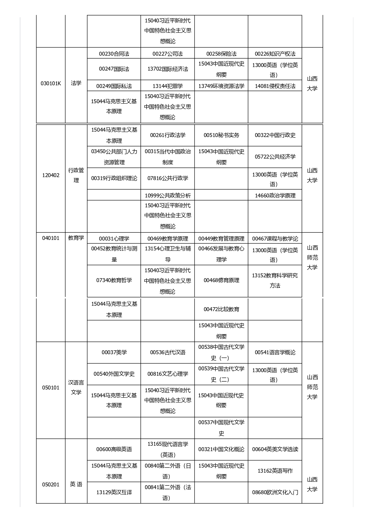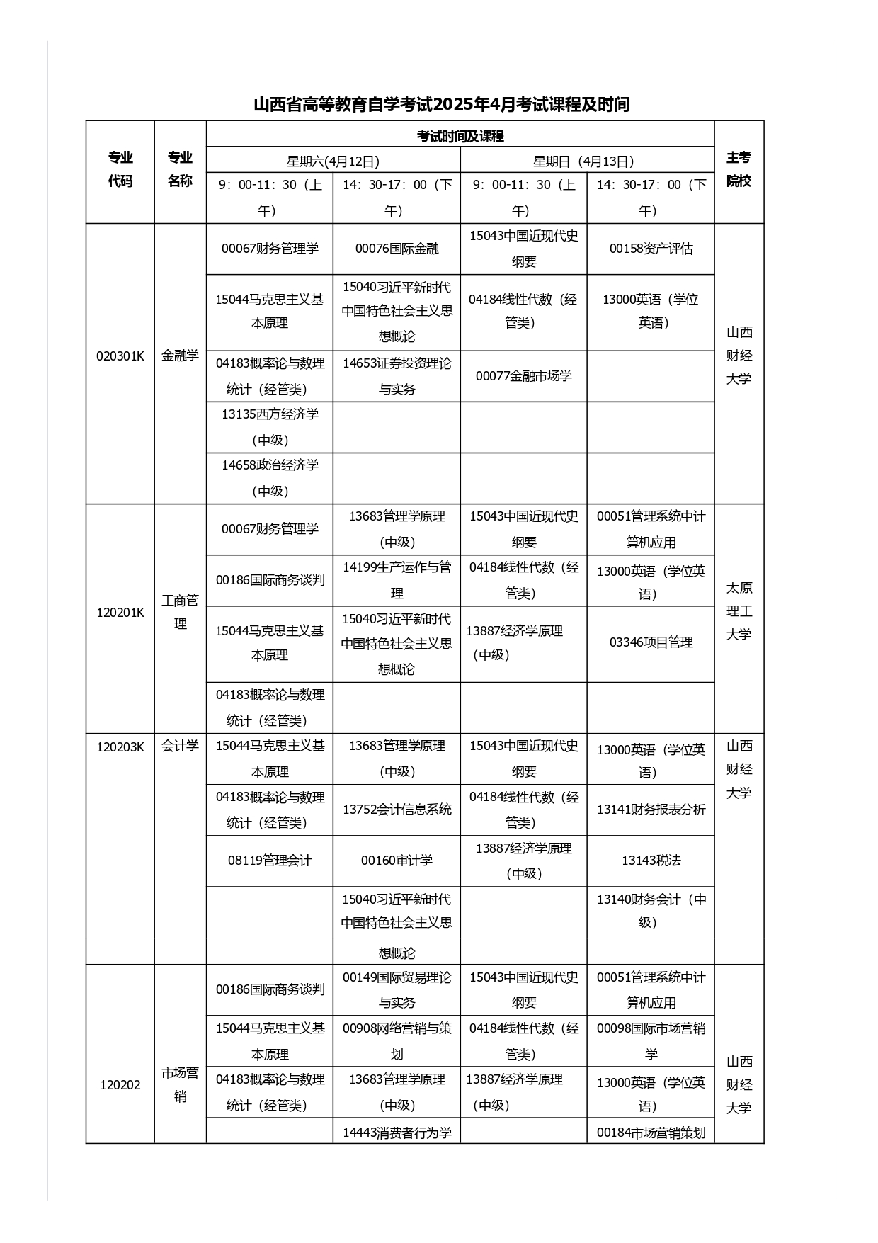 山西省高等教育自学考试2025年4月考试课程及时间安排